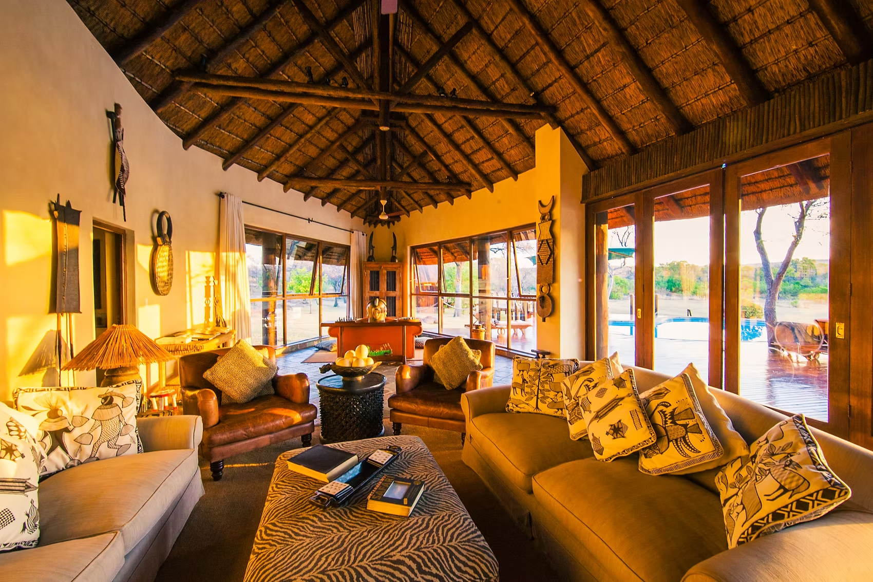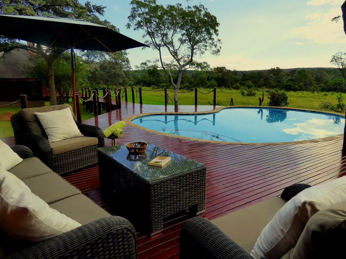 Le lodge peut accueillir jusqu’à 10 personnes, réparties dans 5 chambres ouvertes sur la nature, toutes avec vue sur un point d’eau fréquenté par la faune. La journée, éléphants, antilopes ou zèbres peuvent venir s’y abreuver pendant que vous êtes simplement… en train de lire sur la terrasse ou de profiter de la piscine.